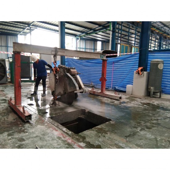 งานตัดพื้นคอนกรีตด้วย Floor saw เป็นเครื่องตัดคอนกรีตแบบรถเข็น เหมาะสำหรับตัดพื้นโรงงานที่มีพื้นที่กว้างๆ ถนน สามารถตัดได้รวดเร็ว